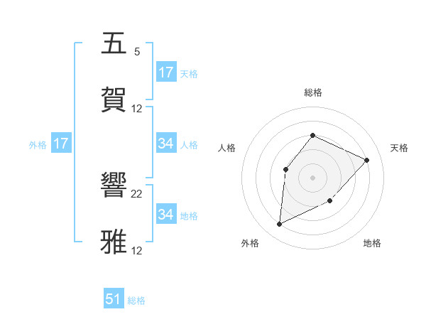 五賀 響雅さんを姓名の画数から五運を鑑定