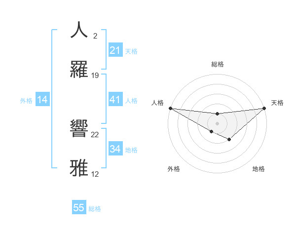 人羅 響雅さんの天格は21画の5点!