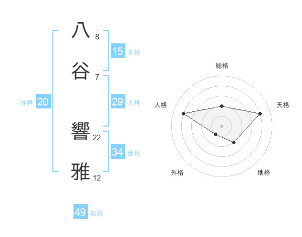 八谷 響雅さんを姓名の画数から五運を鑑定
