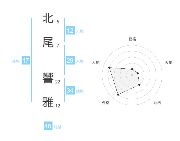 北尾 響雅さんを姓名の画数から五運を鑑定