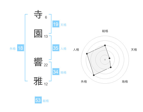 寺園 響雅さんの天格は19画の1点!