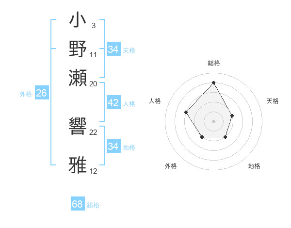 小野瀬 響雅さんを姓名の画数から五運を鑑定