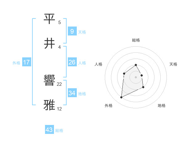 平井 響雅さんの総格は43画の2点!
