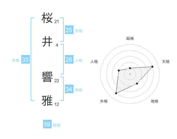 桜井 響雅さんを姓名の画数から五運を鑑定