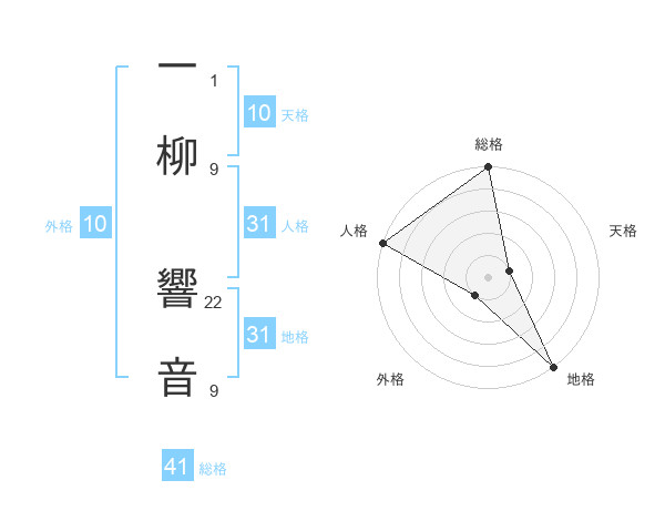 一柳 響音さんの総格は41画の5点!