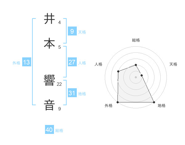 井本 響音さんの総格は40画の2点!