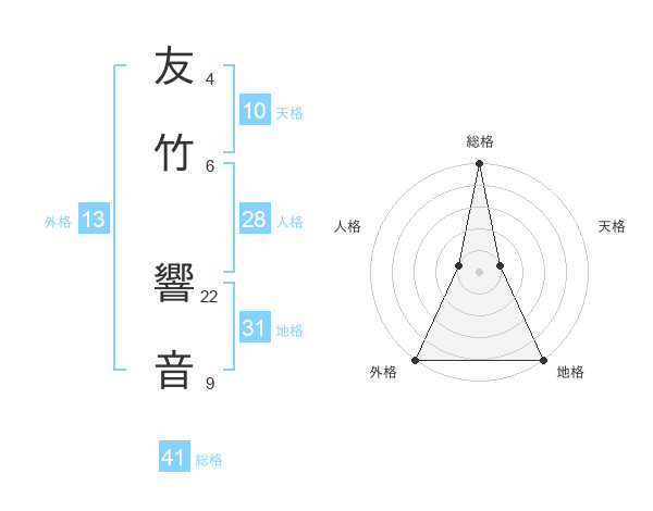 友竹 響音さんの総格は41画の5点!