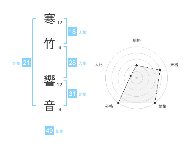 寒竹 響音さんの外格は21画の5点!