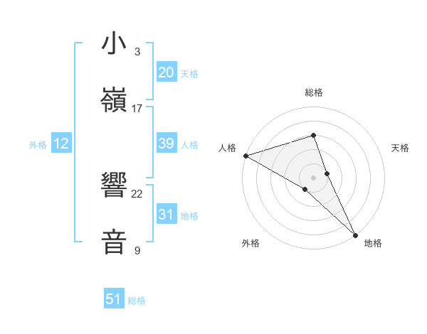 小嶺 響音さんの総格は51画の3点!