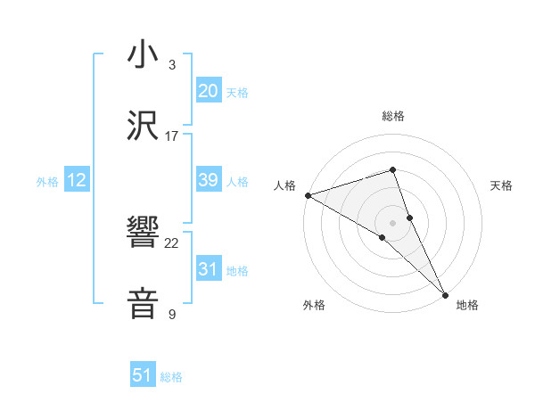 小沢 響音さんの総格は51画の3点!