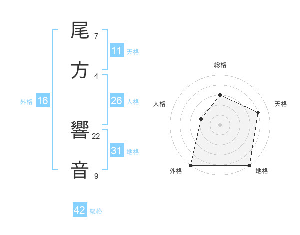 尾方 響音さんの天格は11画の4点!
