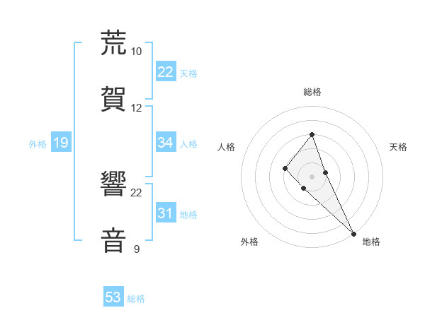 荒賀 響音さんの総格は53画の3点!