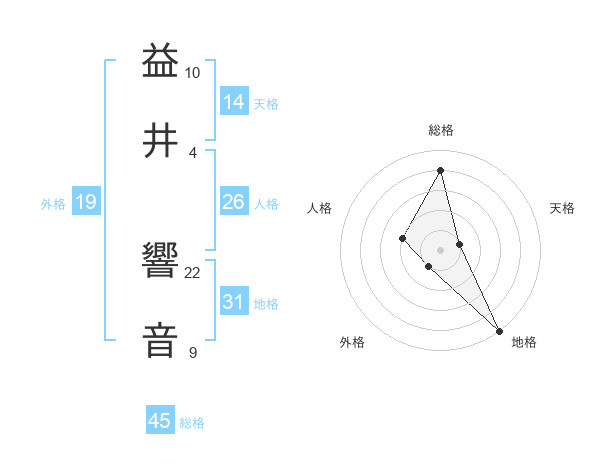 益井 響音さんの総格は45画の4点!