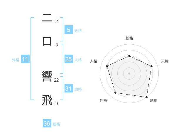 二口 響飛さんの外格は11画の4点!