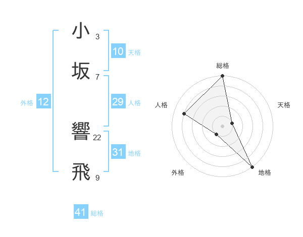 小坂 響飛さんを姓名の画数から五運を鑑定