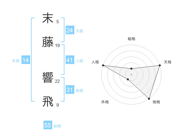 末藤 響飛さんを姓名の画数から五運を鑑定