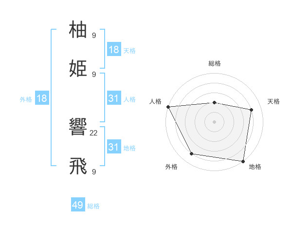 柚姫 響飛さんの総格は49画の2点!