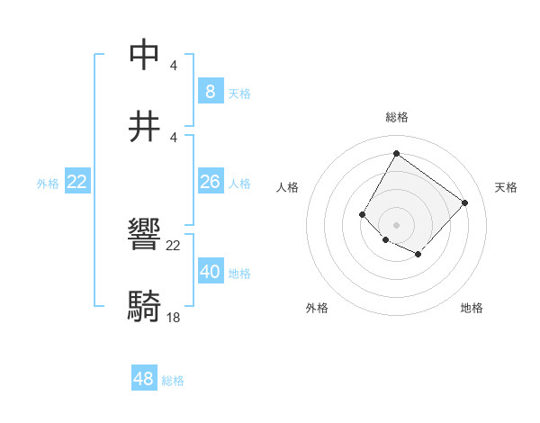 中井 響騎さんの総格は48画の4点!