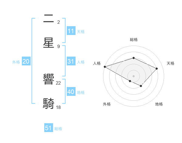 二星 響騎さんの総格は51画の3点!
