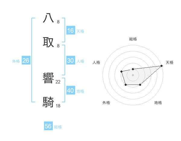 八取 響騎さんの天格は16画の5点!