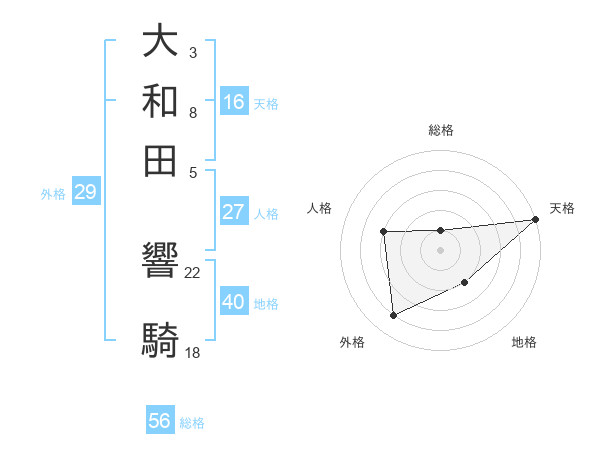 大和田 響騎さんを姓名の画数から五運を鑑定