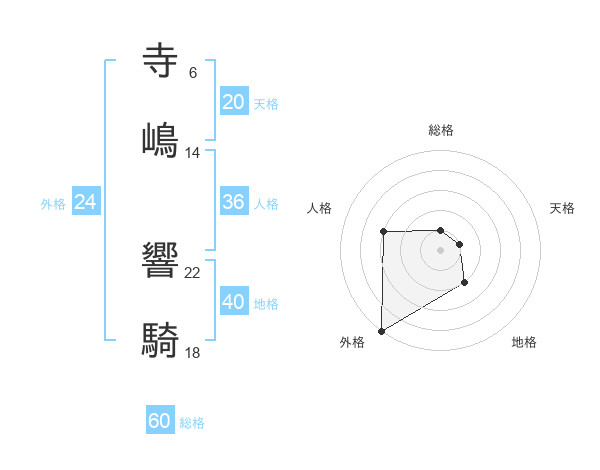寺嶋 響騎さんの総格は60画の1点!