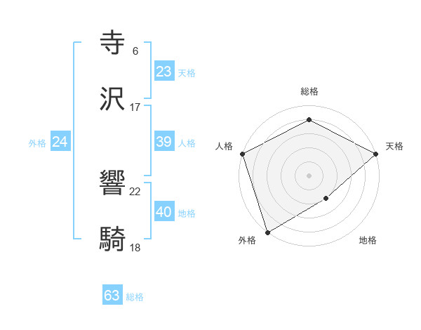寺沢 響騎さんの総格は63画の4点!