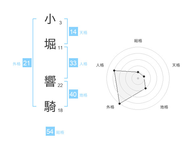 小堀 響騎さんの外格は21画の5点!