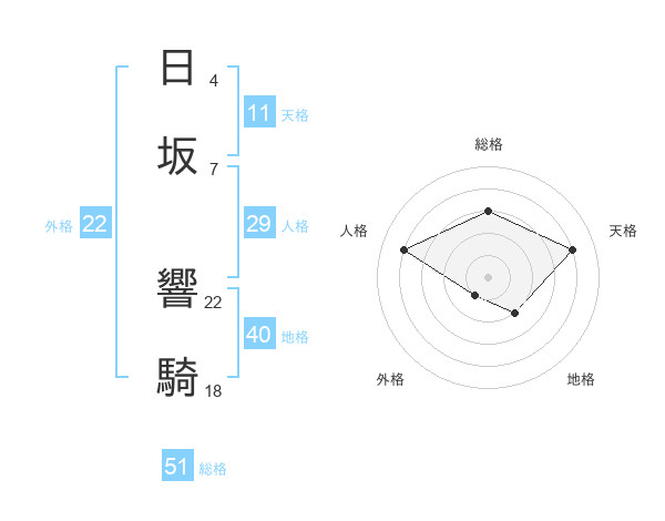 日坂 響騎さんの総格は51画の3点!