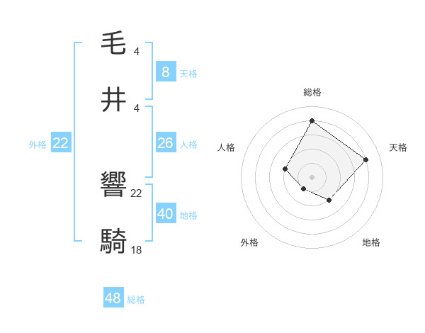 毛井 響騎さんを姓名の画数から五運を鑑定