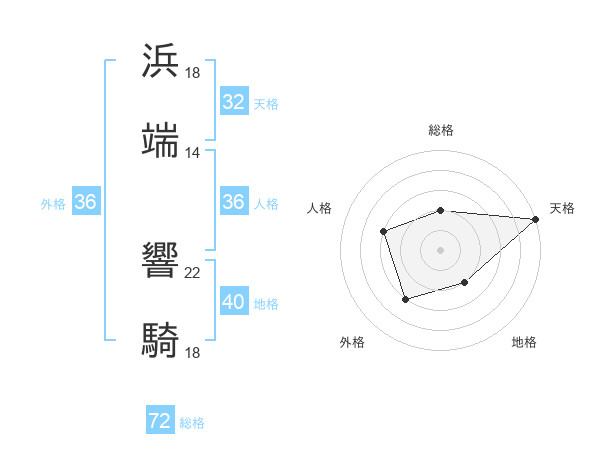 浜端 響騎さんを姓名の画数から五運を鑑定