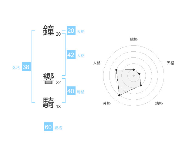 鐘 響騎さんを姓名の画数から五運を鑑定