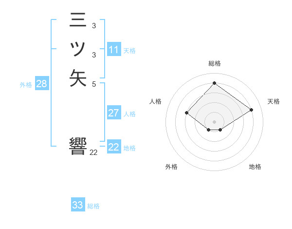 三ツ矢 響さんの総格は33画の4点!
