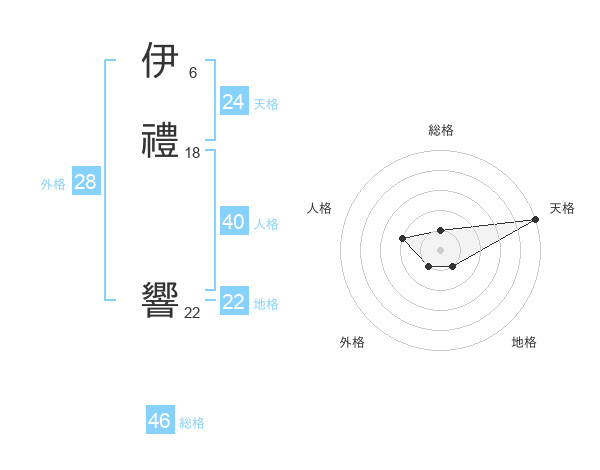 伊禮 響さんの総格は46画の1点!
