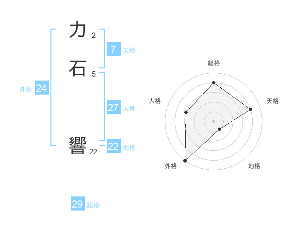 力石 響さんの地格は22画の1点!