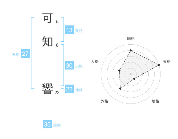 可知 響さんの天格は13画の5点!