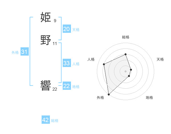 姫野 響さんの総格は42画の3点!