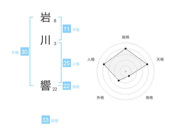 岩川 響さんの総格は33画の4点!