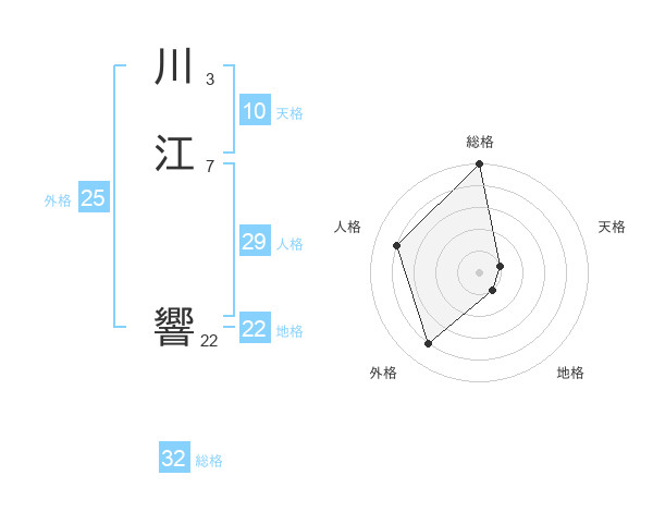 川江 響さんの総格は32画の5点!
