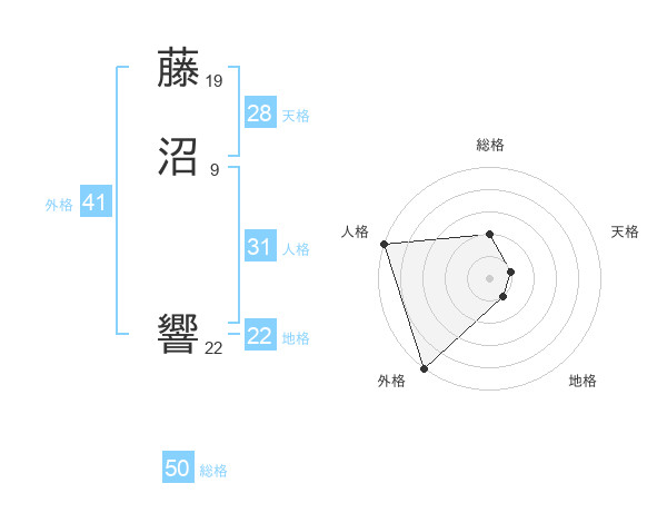 藤沼 響さんの総格は50画の2点!