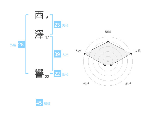西澤 響さんの天格は23画の5点!