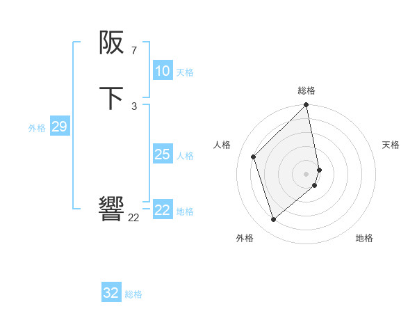 阪下 響さんの総格は32画の5点!