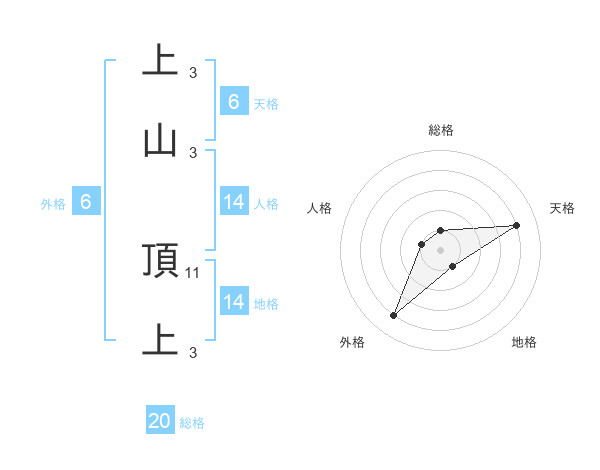 上山 頂上さんの総格は20画の1点!