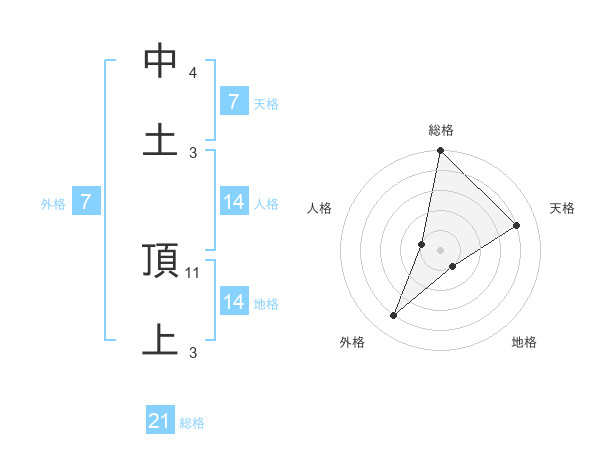 中土 頂上さんの総格は21画の5点!