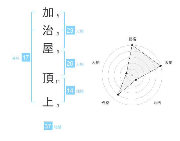 加治屋 頂上さんを姓名の画数から五運を鑑定