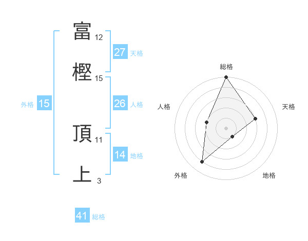 富樫 頂上さんを姓名の画数から五運を鑑定