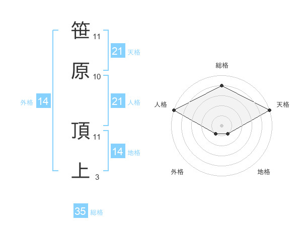 笹原 頂上さんを姓名の画数から五運を鑑定