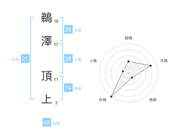 鵜澤 頂上さんを姓名の画数から五運を鑑定