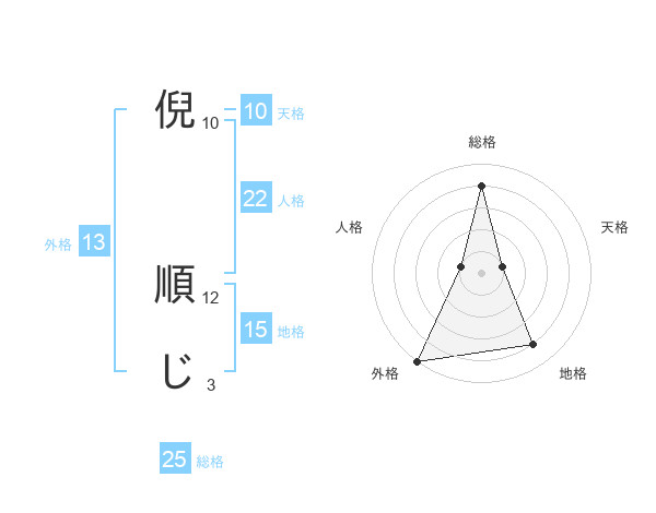 倪 順じさんの総格は25画の4点!