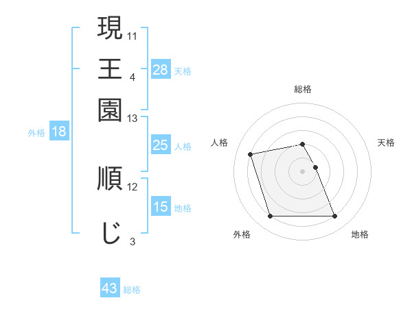 現王園 順じさんの総格は43画の2点!